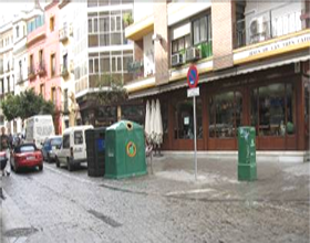 Con el fin de cumplir con la Ley Andaluza de Patrimonio Histórico, que establece normas para minimizar la contaminación visual en los entornos de los centros históricos-artísticos de las ciudades andaluzas, el Ayuntamiento de Sevilla está retirando los contenedores de basura y sutituyéndolos por cubos individuales.